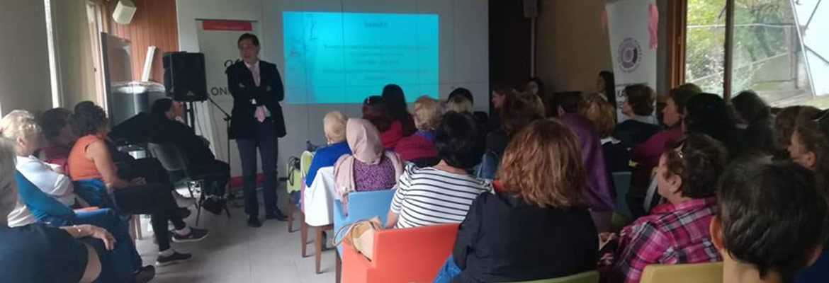 Nilüfer Kent Konseyi Kadın Meclisi toplantısında, 1-31 Ekim Meme Kanseri Farkındalık Ayı dolayısıyla meme kanseri ile ilgili bilgilendirme yapıldı. OnkoDay’dan Dr. Murat Çalıkapan ve Hemşire Elif Pişkin, meme kanserinde erken teşhis ve elle muayene konularında gönüllüleri bilgilendirdi. Sunum sonunda Kadın Meclisi Başkanı Cevriye Coşkun Kayış, değerli katkılarından dolayı konuklarımıza teşekkür etti.