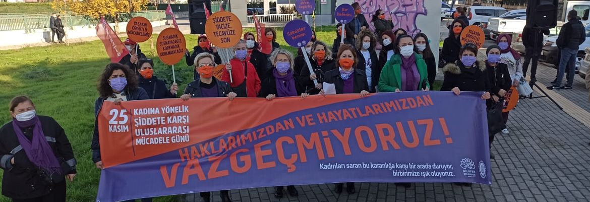 25 Kasım Kadına Yönelik Şiddete Karşı Uluslar arası Mücadele Günü’nde Morfidan Kadın Ormanı’nda pandemi kuralları çerçevesinde bir araya geldik, bir kez daha ‘Haklarımızdan ve Hayatlarımızdan Vazgeçmiyoruz’ diyerek tepkimizi dile getirdik. Nilüfer Kent Konseyi Başkanı Neslihan Binbaş, Nilüfer Belediyesi Başkan Yardımcısı Sibel Özer, Kadın Meclisi Başkanı Nergiz Döner katıldı. Nergiz Döner’in yaptığı basın açıklamasında dayanışmanın kazanacağına vurgu yapıldı ve taleplerimiz tekrar dile getirildi.