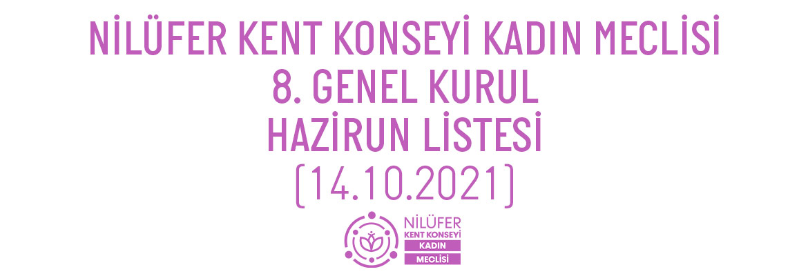 Nilüfer Kent Konseyi Kadın Meclisi 8. Seçimli Genel Kurulumuz 14 Ekim Perşembe saat 17.00`de Nilüfer Nikahevi Yakut Salon`da gerçekleşecektir.