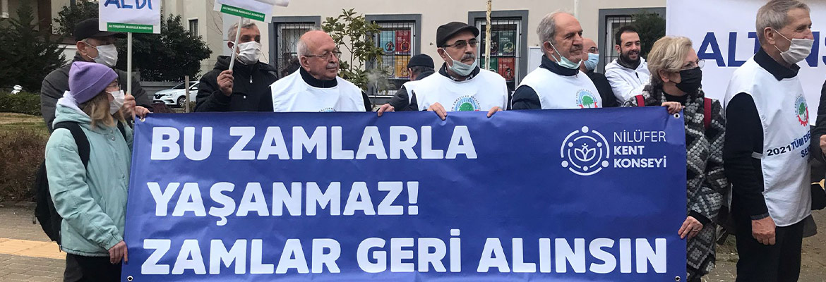 Altınşehir Mahallesi Sakinleri; elektrik, doğalgaz, akaryakıt ve gıda zamlarına karşı ``Bu Zamlarla Yaşanmaz, Zamlar Geri Alınsın`` demek için Altınşehir Mahalle Muhtarlığı`nın önünde bir araya geldi. Altınşehir Mahalle Komitesi`nin organize ettiği basın açıklamasına dövizleriyle katılan mahalleli, tepkilerini dile getirdiler. Nilüfer Kent Konseyi Başkanı Neslihan Binbaş`ın da katıldığı basın açıklamasını ise Altınşehir Mahalle Komitesi ve Nilüfer Kent Konseyi Yedek Yürütme Kurulu Üyesi Nergiz Çetindişli Tunalı okudu.