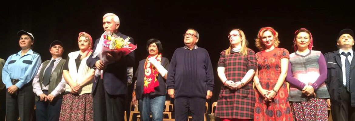 Nilüfer Kent Konseyi Kadın Meclisi Tiyatro Grubu, 8 Mart Dünya Kadınlar Günü etkinlikleri kapsamında bugün Nazım Hikmet Kültürevi'nde sahnedeydi. Kapkaççı saldırısına uğrayan ve kendisini korumaya çalışırken kolu kırılan fakat buna rağmen yine de sahneye çıkarak rolünü oynayan gönüllümüz Binay Yücel ile birlikte ayakta alkışlanan grubumuza çiçeğini, Nilüfer Kent Konseyi başkanı Şazi Çavuşoğlu takdim etti.