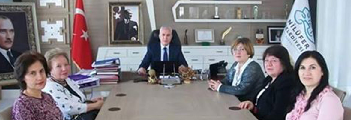 Nilüfer Kent Konseyi Kadın Meclisi Başkanı Nebahat Ulugül ve Yürütme Kurulu üyeleri Şükran Kılıç, Gülser Çelik, Gönül Temelli ve Hikmet Ay ile birlikte Nilüfer Belediye Başkanı Mustafa Bozbey'i ziyaret ederek, Kadın Meclisi çalışmaları hakkında bilgi verdiler.