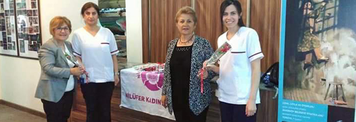 Nilüfer Kent Konseyi Kadın Meclisi üyeleri Ahmet Vefik Paşa Devlet Tiyatrosu'nda Hemşireler Haftası nedeniyle düzenlenen etkinliğe katıldılar ve etkinlik sonunda çiçeklerle hemşirelerin gününü kutladılar.