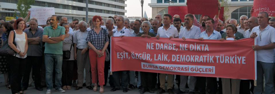 İçine girmiş olduğumuz süreç tüm demokrasi güçlerine önemli görevler yüklemektedir. Her türlü darbeye karşıyız ancak 15 Temmuz öncesi bombaların patladığı, katliamların olduğu, ölümlerin ve savaş görüntülerinin yaşandığı, her türlü hukuksuzluğun ve faşizan uygulamaların Türkiyesine geri dönmek istemiyoruz. Bu sorumluluk ve bilinçle Bursa Demokrasi Güçleri olarak her türlü saldırı karşısında dayanışma içerisinde olacağımızı kamuoyuna duyurmak istiyoruz.
