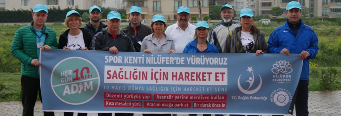 Sağlıklı Kentler Birliği çalışmaları kapsamında “Dünya Sağlık için Hareket Et Günü”nde sabah yürüyüşü gerçekleştirildi. 100. Yıl Mahallesi’nde bulunan Ayvalı Dere Parkı ve Koşu Yolu’ndaki yürüyüşe katılanlar, sağlık için 10 bin adım attılar. Yürüyüşün ardından, parkta bulunan açık alan spor aletlerinde spor da yapıldı. Yürüyüşe katılanlar arasında yer alan Nilüfer Belediyesi Meclis Üyesi Nilgün Berk, sporun bir kültür olarak yerleşmesinin sağlıklı bir yaşam için önemli olduğunu belirterek, ‘Nilüfer, bugün 140 kilometreyi aşan bisiklet yolları, yürüyüş yolları ve hemen hemen tüm parklarında bulunan açık alan spor aletleriyle sağlıklı bir yaşam için gerekli donanıma sahip bir kent. Bugün yürüyüşe katılan herkesin kendilerine kazandırdıkları bu güzel alışkanlıkları, çocuklarına ve ailelerine de yönlendireceklerini düşünüyoruz. Bundan böyle herkesi her gün 10 bin adım atmaya davet ediyoruz” şeklinde konuştu.