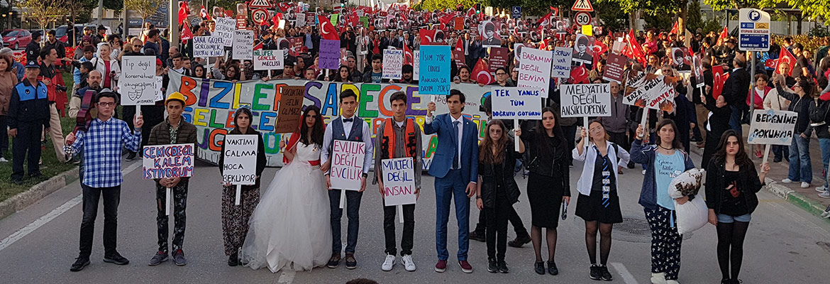 Kortejde, Nilüfer Kent Konseyi Gençlik Meclisi üyeleri ön sırada yer aldı. 'Bizler sadece geleceğin sahipleri değil bugünün de ortaklarıyız' pankartı taşıyan gençler, çocuk gelin, çocuk damat, barınma sorunu, Aladağ yangınında ölen gençler, sınav stresi, çocuk işçi gibi sorunlara dikkat çekti. Gençler, yürüyüş boyunca “Gençlik birlikte güçlü”, “Gençler birlik olsa dünya yerinden oynar”, “Susma haykır gençlik vardır” sloganları attı. FSM Bulvarı’ndan başlayan yürüyüş, Nilüfer Cumhuriyet Meydanı’nda son buldu.