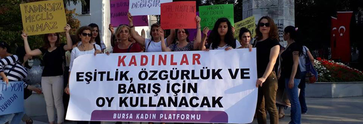 Nilüfer Kent Konseyi Kadın Meclisi'nin de bileşeni olduğu Bursa Kadın Platformu, 24 Haziran'da seçime girecek partilere taleplerini iletmek üzere bir basın açıklaması gerçekleştirdi. Heykel Atatürk Anıtı önünde düzenlenen basın açıklamasına Nilüfer Kent Konseyi Kadın Meclisi üyelerinin yanı sıra çok sayıda kadın katıldı. Kadınların oyunun cinsiyet ayrımcılığına, kadın cinayetlerine ve eşitsizliğe son vereceklere olduğunu belirten kadınlar, 'Bu iktidardan çok sıkıldık artık TAMAM!' diyerek tepkilerini dile getirdiler.