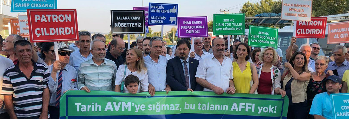 Mudanya''da 2 bin 700 yıllık Myrleia Antik Kenti üzerine yapılan alışveriş merkezine tepkiler büyüyor. İmar barışı fırsatçılığıyla açılmak istenen AVM''ye tepki gösteren vatandaşlar Myrleia Antik Kenti Platformu''nun antik kent üzerinde yükselen AVM önünde düzenlediği basın açıklamasında bir araya geldiler. Basın açıklamasına Nilüfer Kent Konseyi Başkanı Fehmi Enginalp de destek verdi.