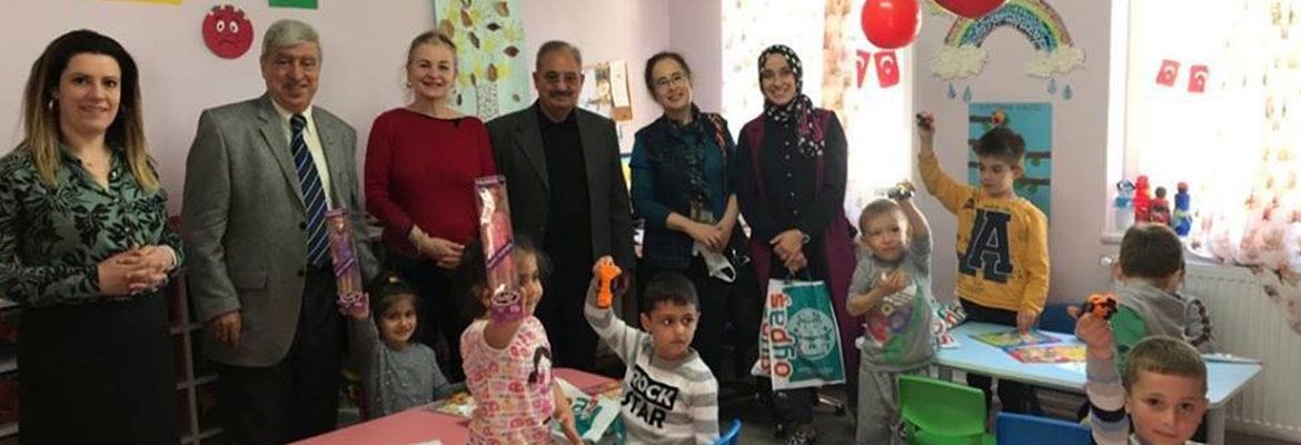 Nilüfer Kent Konseyi Emekliler Meclisi gönüllüleri, Gökçeköy İlkokulu öğrencilerine 23 Nisan sürprizi yaparak oyuncak ve kitap hediye ettiler.