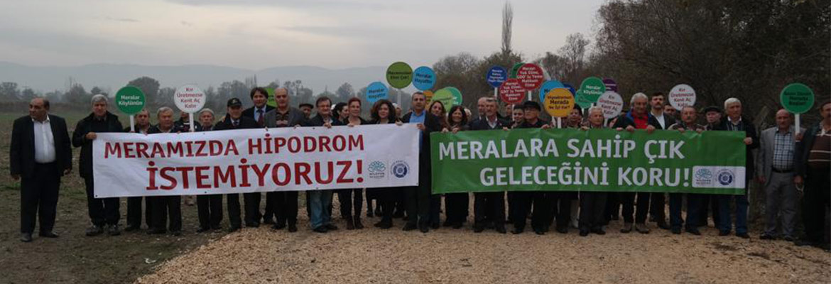 'Meramızda hipodrom istemiyoruz!', 'Kır üretmezse kent aç kalır', 'Meralara sahip çık, geleceğini koru' yazılı pankartlarla şikayetlerini dile getiren Ürünlü halkına, çeşitli kurum ve kuruluşlar da destek verdi.