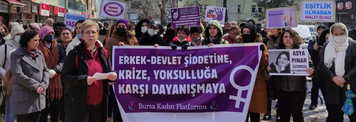 Bileşeni olduğumuz Bursa Kadın Platformu, katledilen Asya Pınar Üzümcü için sokaktaydı. Kestel`de gerçekleşen eylemde platform adına basın açıklamasını Nilüfer Kent Konseyi Başkanı Neslihan Binbaş okudu. Basın açıklamasının ardından eyleme katılan kadınlar, Asya Pınar Üzümcü`nün ailesiyle buluştu ve aileye üzüntülerini dile getirdi.