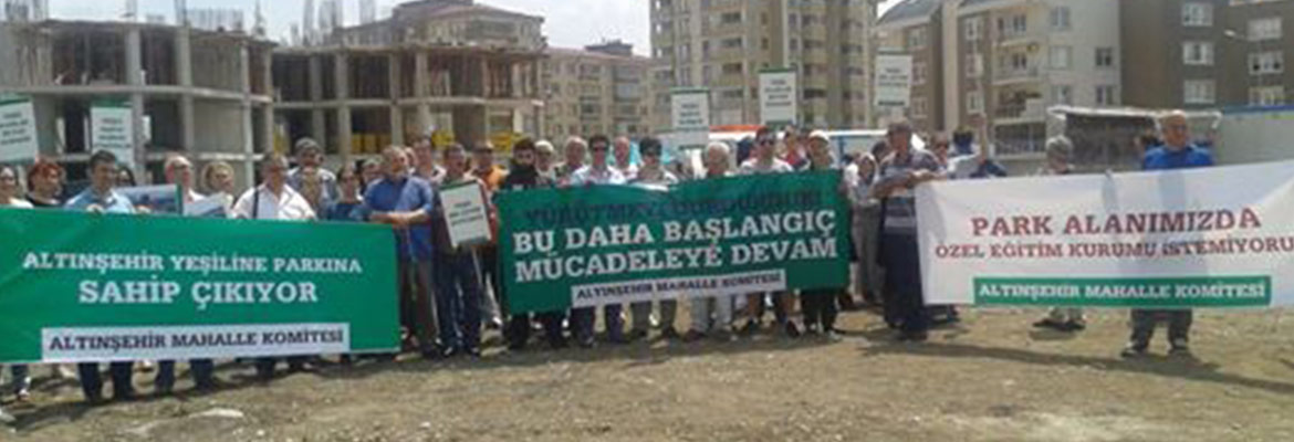 Park alanlarında yapılan plan değişikliği sonrasında harekete geçen ve hukuksal mücadeleleri sonucu yürütmeyi durdurma kararı çıkan alanda bir araya gelen Altınşehir Mahalle Komitesi üyeleri ve mahalle sakinleri basın açıklaması yaptı.