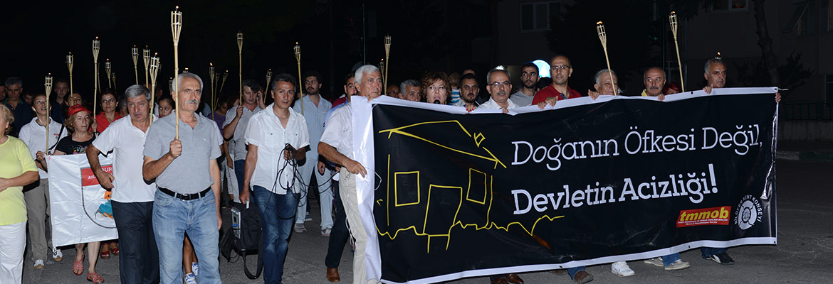 Nilüfer Kent Konseyi ve TMMOB Bursa İl Koordinasyon Kurulu 17 Ağustos Marmara Depremi’ni unutmayarak düzenlediği yürüyüşle halkı ve hükümeti yaşanabilecek doğal afet için duyarlı olmaya davet etti. Nilüfer Kent Konseyi önünde toplanan kalabalık, ‘Deprem değil ihmal öldürür, depremi unutma, unutturma’ gibi sloganlar atarak meşaleler eşliğinde Üç Fidan Gençlik Parkı’na yürüdü. Burada Nilüfer Kent Konseyi ve TMMOB Bursa İl Koordinasyon Kurulu adına Bursa Jeoloji Mühendisleri Odası Yönetim Kurulu Üyesi Özer Akbaş bir basın açıklaması yaptı.