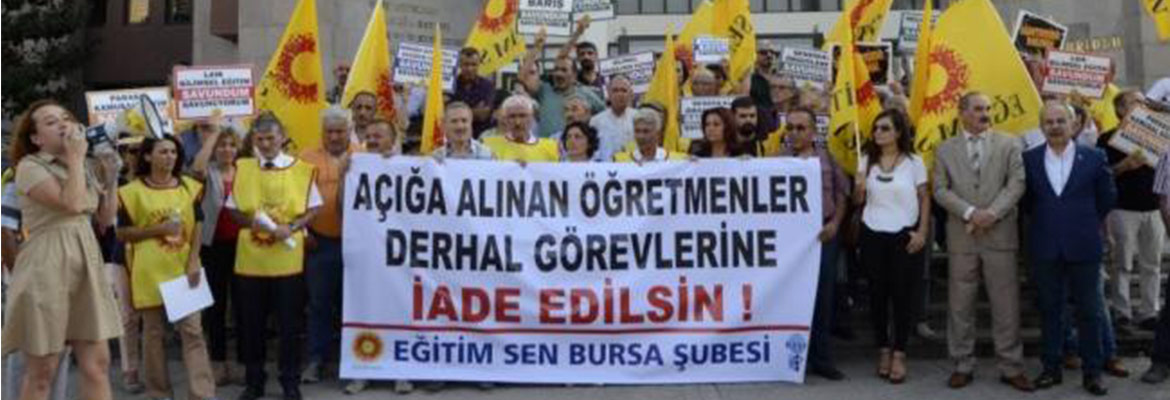 2016-2017 eğitim öğretim yılının başlamasıyla birlikte, açığa alınan öğretmenlerin görevlerine iadesine yönelik Eğitim Sen Bursa Şubesi, Bursa İl Milli Eğitim Müdürlüğü önünde bir basın açıklaması gerçekleştirdi.